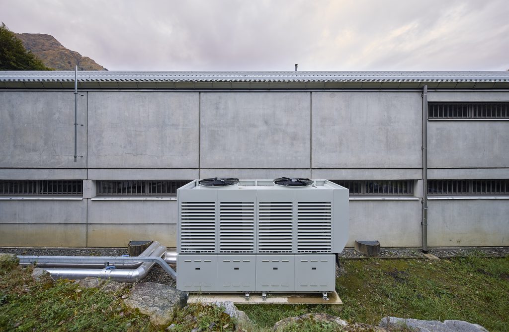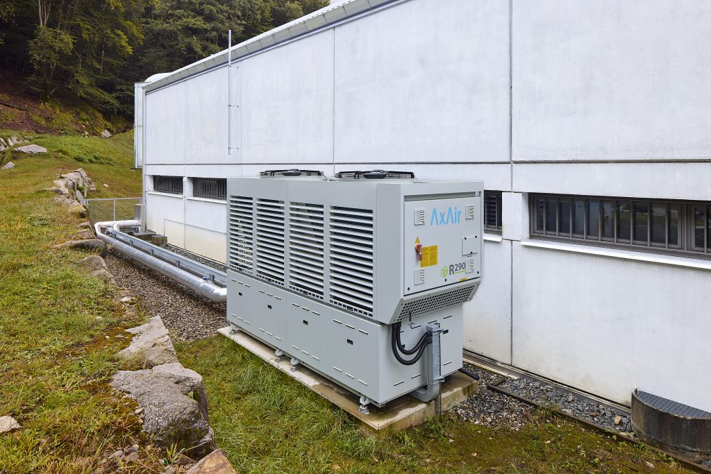 Die Enerblue Palladium Wärmepumpe sorgt für die Beheizung des theoretischen Schulgebäudes auf dem Waffenplatz im Dorf Isone. Trotz vier Scroll-Verdichtern und einer beeindruckenden Leistung von 100 kW beträgt der maximale Schallleistungspegel nur 73 Dezibel. Mit Propan können hohe Vorlauftemperaturen von bis zu 70°C erreicht werden. Eventuelle Leckagen im Kältemittelkreislauf werden so sofort erkannt und die Maschine wird sofort abgeschaltet. Ausserdem bleibt der Stromverbrauch für eine Wärmepumpe dieser Leistungsklasse vernünftig.